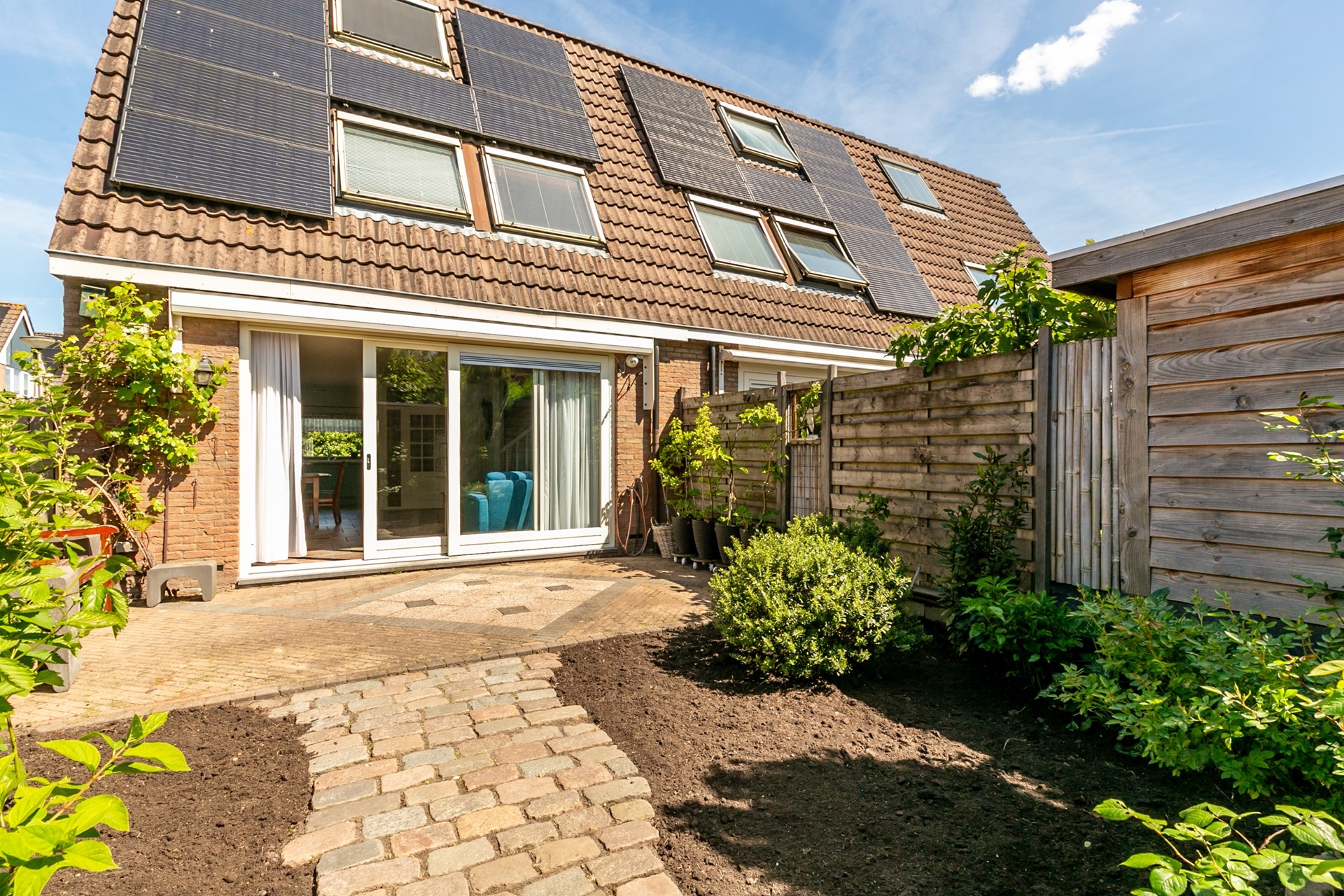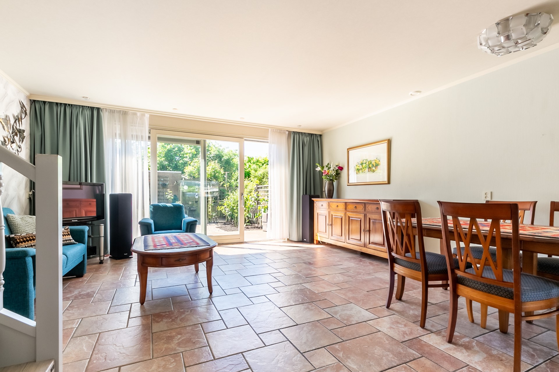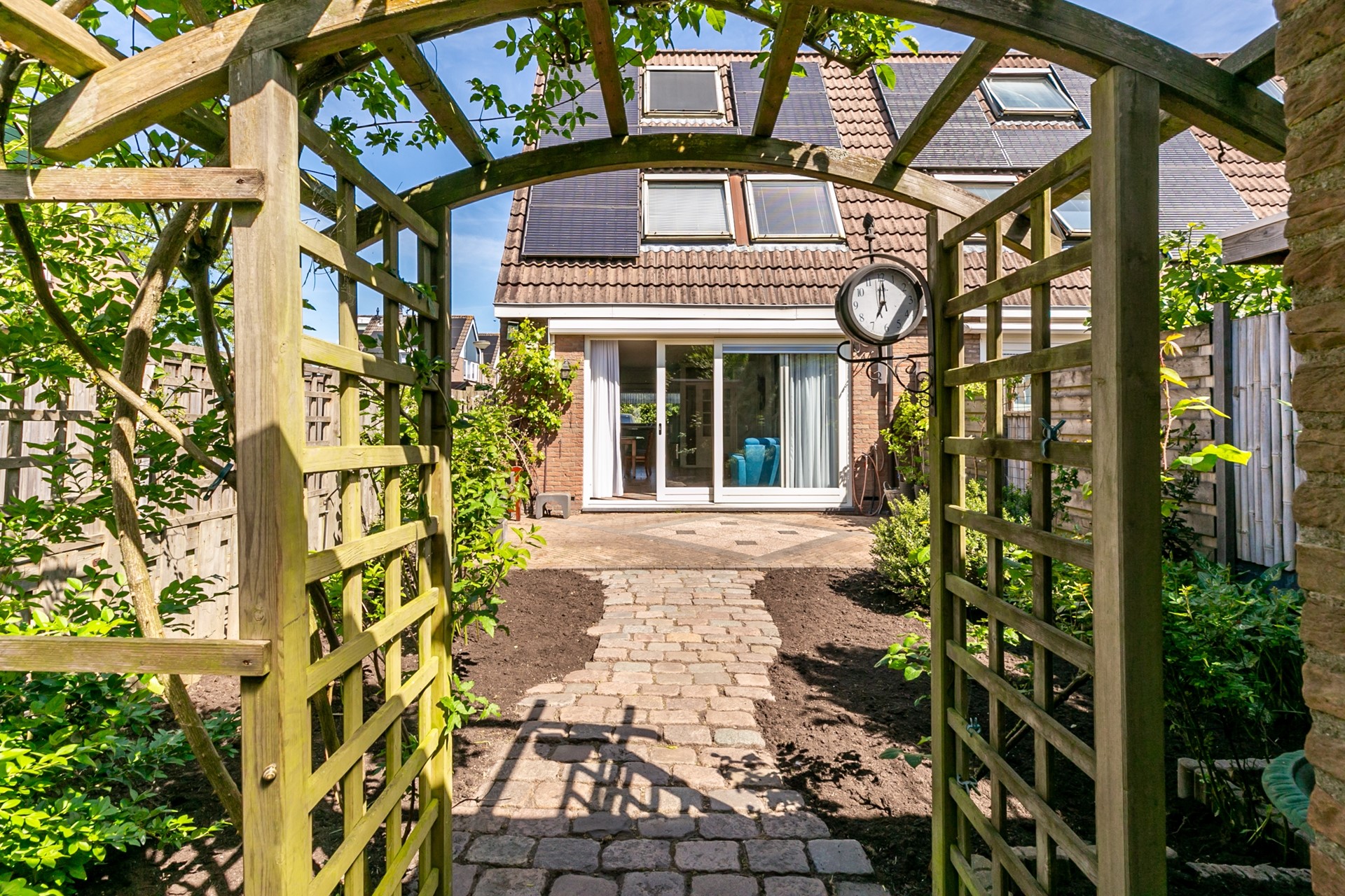 Vanuit de hal loopt u door naar de lichte woonkamer, waar de grote schuifpui zorgt voor een mooie verbinding met de zonnige achtertuin. Hier kunt u een comfortabele zithoek creëren om optimaal te genieten van het buitenleven. Achterin de tuin vindt u een stenen berging, ideaal voor uw fietsen, gereedschap of andere spullen.