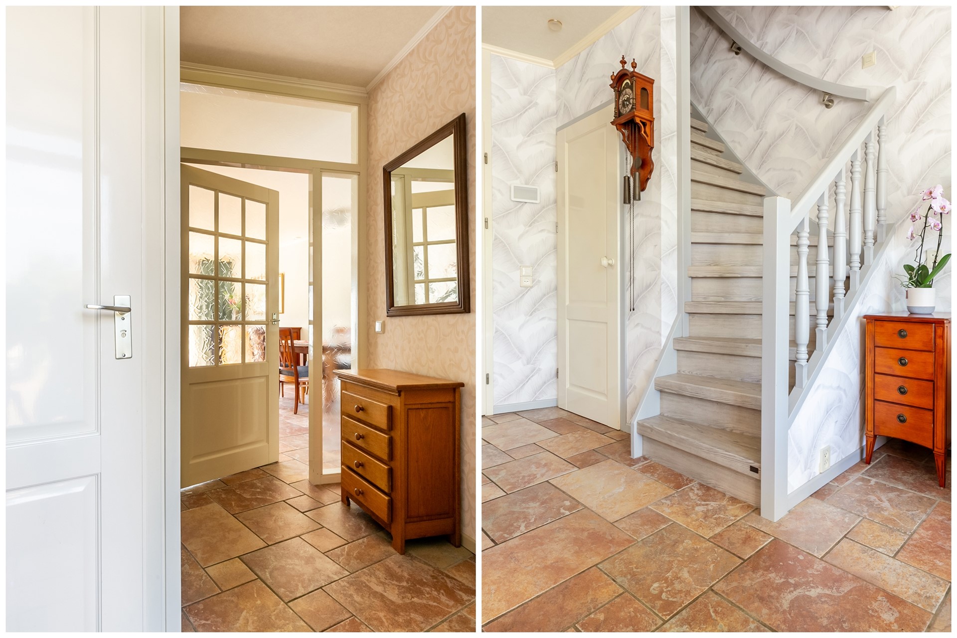 Bij binnenkomst in de woning stapt u in een ruime en overzichtelijke hal. Hier bevindt zich een apart toilet met fontein.